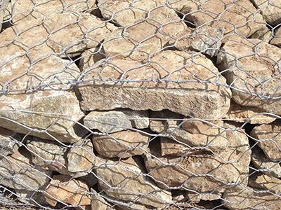 石籠網(wǎng)由高抗腐蝕、高強度、具有延展性的低碳鋼絲或者包覆PVC的以上鋼絲使用機械編織而成,使用該網(wǎng)制作而成的箱型結構就是石籠網(wǎng)箱。根據(jù)ASTM和EN標準,所使用的低碳鋼絲直徑根據(jù)工程設計要求而不同。一般介于2.0-4.0mm之間,石籠網(wǎng)鋼絲的抗拉強度不少于38kg/m2,金屬鍍層重量一般高于245g/m2,石籠網(wǎng)片的邊緣線直徑一般要大于網(wǎng)線直徑。其雙線絞合部分的長度不得小于50mm.以保證絞合部分鋼絲的金屬鍍層和PVC鍍層不受破壞。